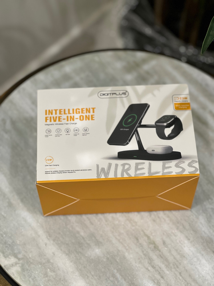 المميزات والمواصفات :سرعة الشحن : تصل إلى 23 واطعدد الأجهزة : يمكن شحن حتى 3 قطع ( ساعة - سماعة أو جوال - جوال )أمان الشحن : شحن آمنإضاءة ليليةشحن لاسلكي : شحن لاسلكي سريعمغناطيس قوي
